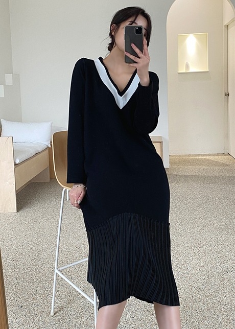 디에르 브이 플리츠 원피스