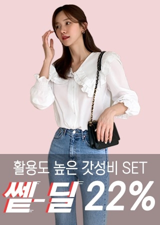 빅카라 프릴 블라우스 + (연청) 롱 부츠컷 데님 팬츠(S~XL)