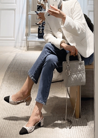 (당일발송)코코 배색 슬링백 (6cm)(트위드핑크250)