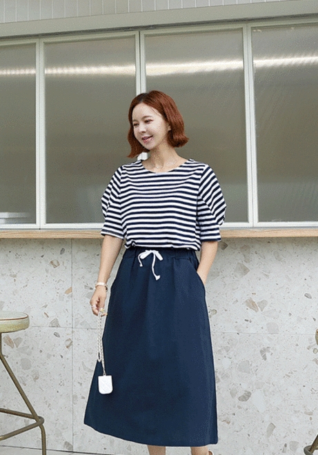 스트링린넨 밴딩스커트