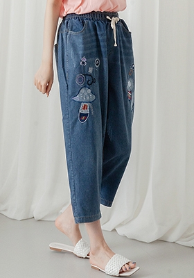쿨워싱 배기밴딩 8부바지 [머쉬룸]