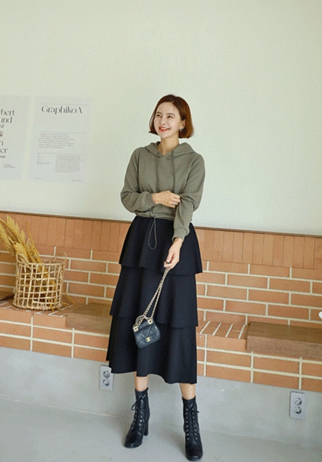캉캉후드 배색원피스