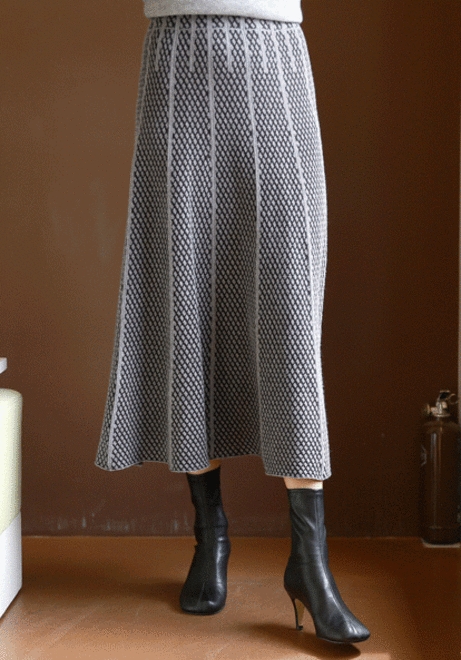 볼륨패턴 니트스커트