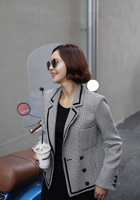 배색라인 체크자켓