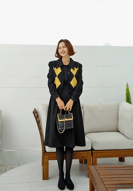다이아배색 조끼원피스세트