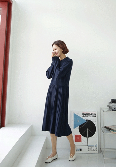 꾸안꾸 플리츠니트원피스