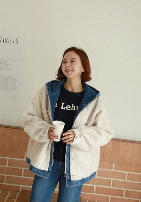 데님후드 뽀글자켓
