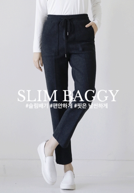 드롭스트링 모직팬츠