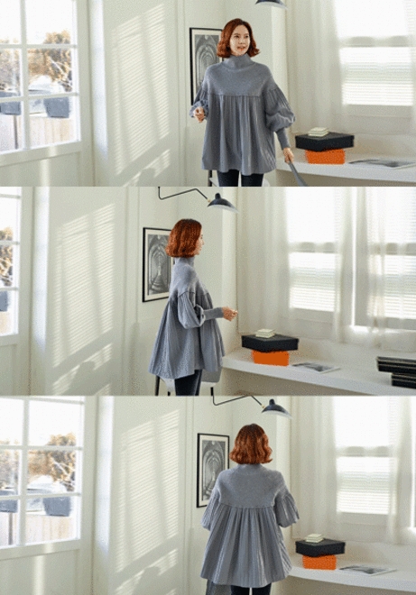 니트플리츠 배색블라우스