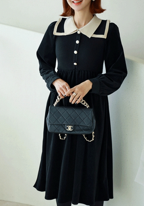 더블배색 카라원피스