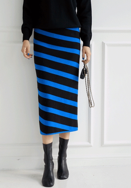 사선컬러 니트스커트