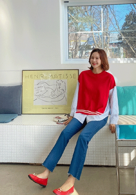 배색셔츠 스타일니트