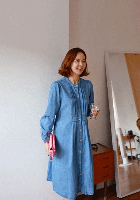헨리넥핀턱 데님원피스