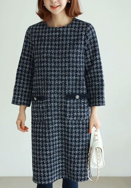 클래식트윗 버튼원피스