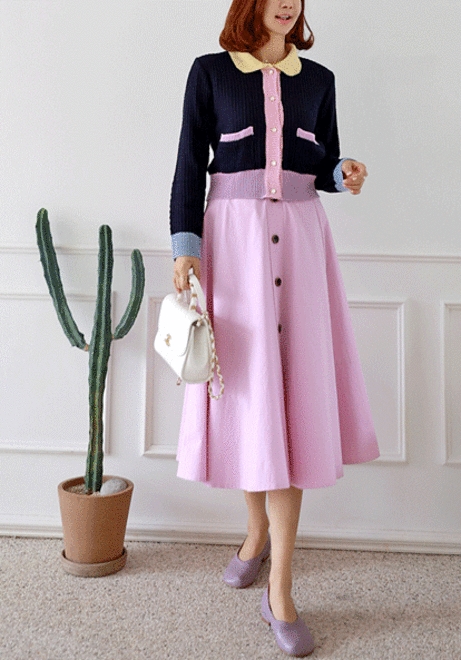 버튼 코튼스커트