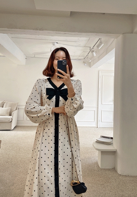 리본도트 원피스