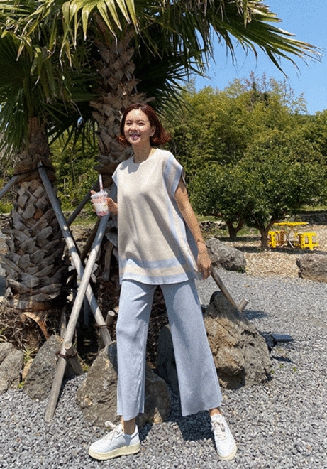사각배색 니트세트