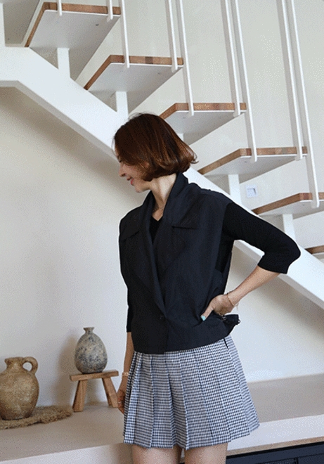 체크플리츠 치마바지