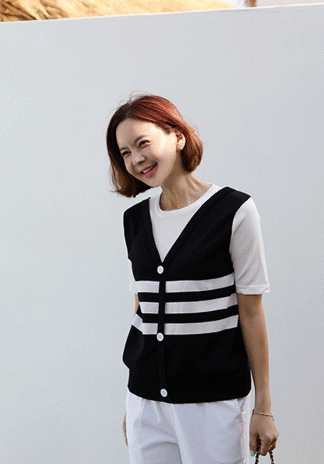 조끼배색 반팔니트