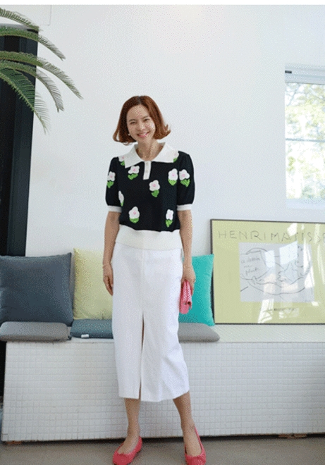 넥배색 단가라니트