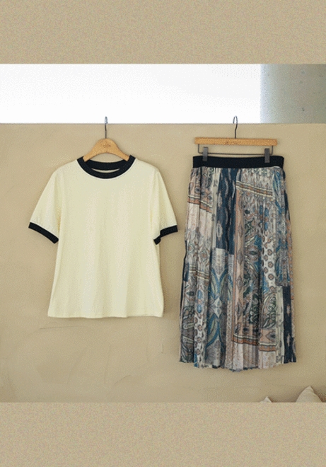 라인배색 주름스커트세트