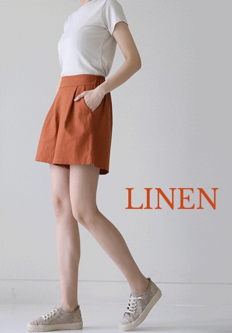 핀턱주름 3부린넨팬츠