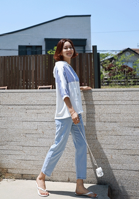배색믹스 후드티