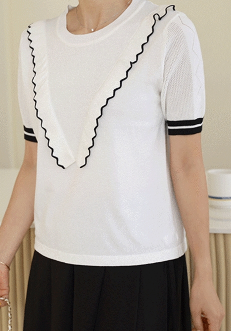 브이모양 물결니트