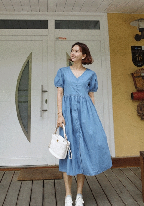 어깨봉긋 데님원피스