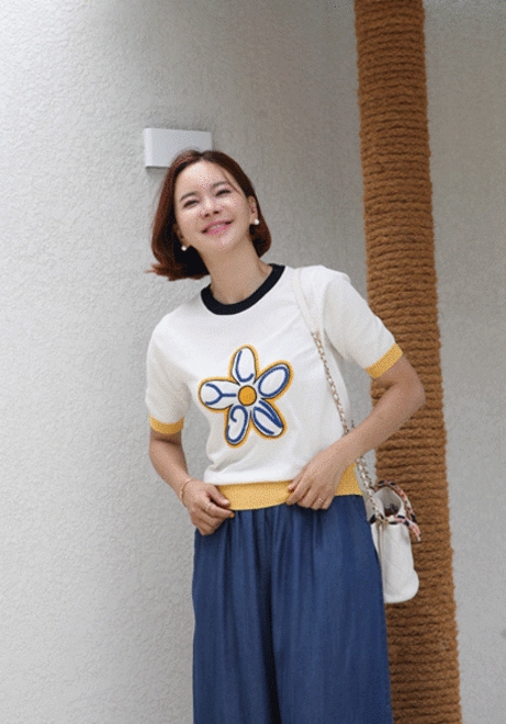 센터플라워 반팔니트