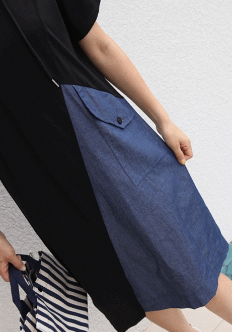 사선데님 후드원피스