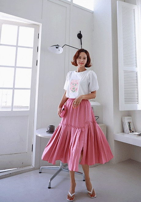 입체주름 롱스커트