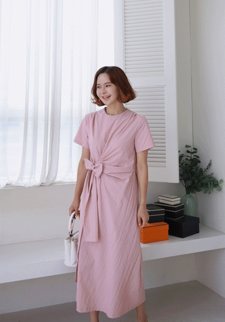허리랩리본 롱원피스