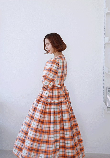 우아쉐입 체크원피스