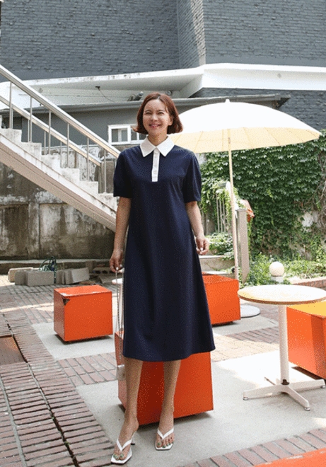 클래식카라 배색원피스