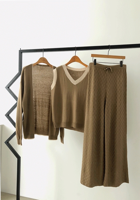 배색라인 쓰리피스