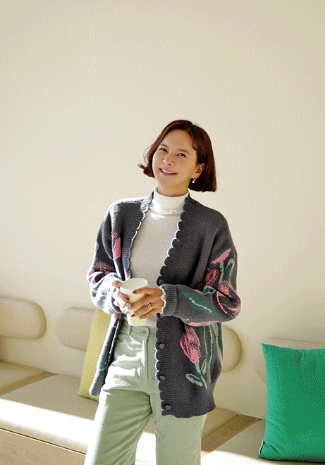 물결라인 빅꽃가디건