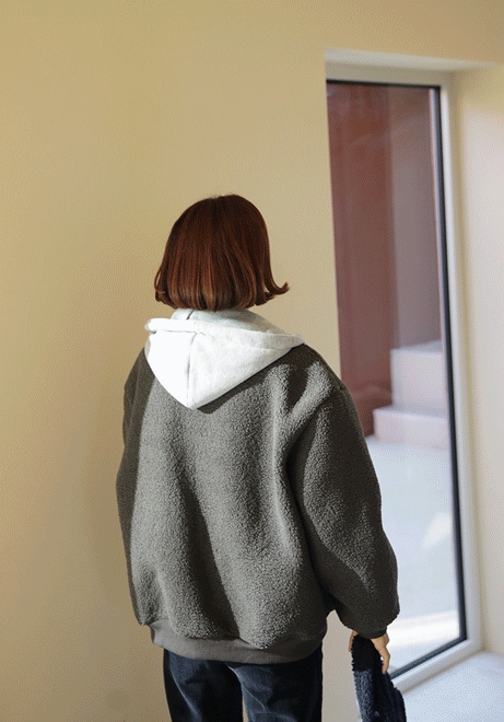 양털배색 후드점퍼
