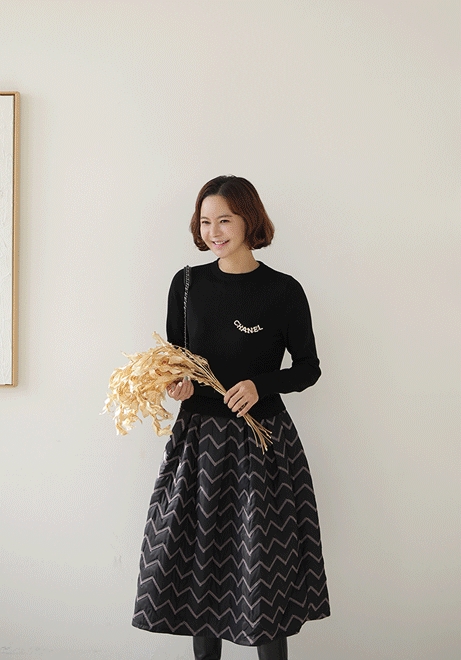 지그재그 배색패딩원피스