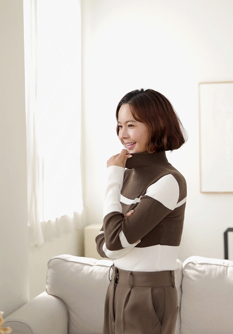 배색슬림 골지폴라니트
