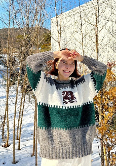 투에니원 배색니트