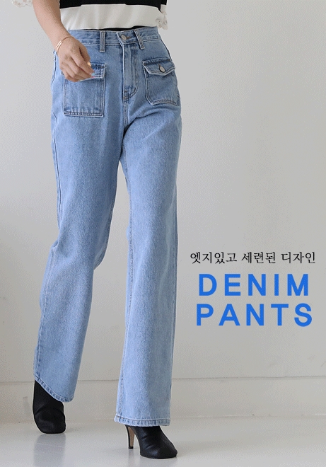 프론트플랩 와이드데님팬츠