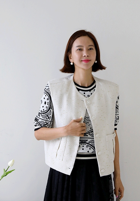 꽃버튼 펄트위드조끼