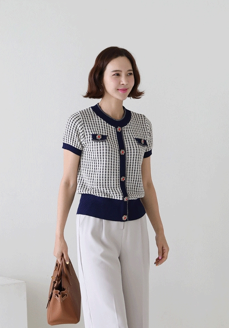 체크 가디건탑