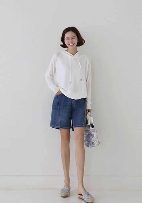 라인디테일 데님반바지