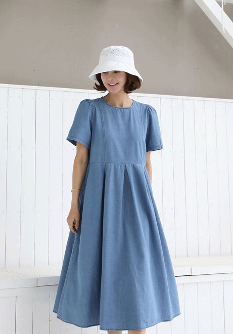 뒷자개단추 데님원피스