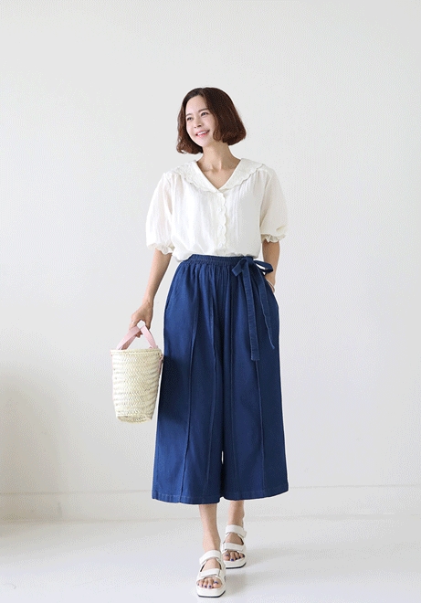 입체절개 리본데님팬츠