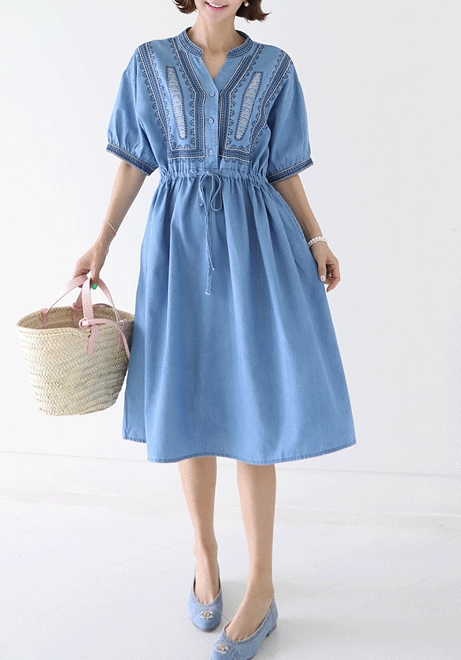 에스닉넥 데님원피스