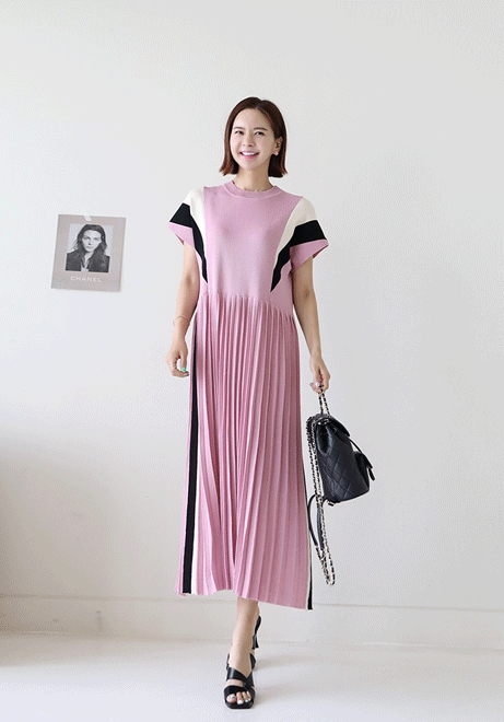 캡배색 날개니트원피스