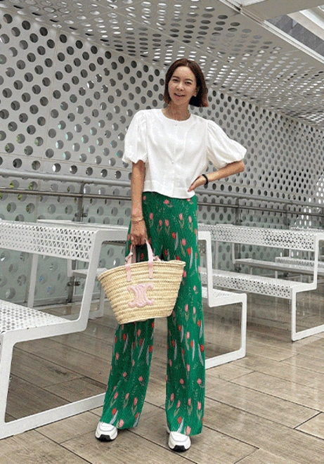 튤립플리츠 통팬츠